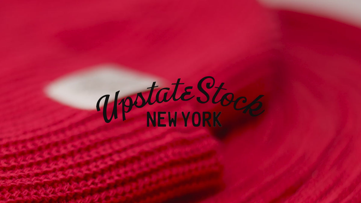 The product that has made us famous. Working with our non-profit partner in the Finger Lakes area of New York, we use a Syracuse-made Tompkins circular knitting machine to create a beautiful half-cardigan knit fabric we cut and sew here in New York City ourselves to create these vibrantly colored hats that are 100% made in New York State from start to finish.