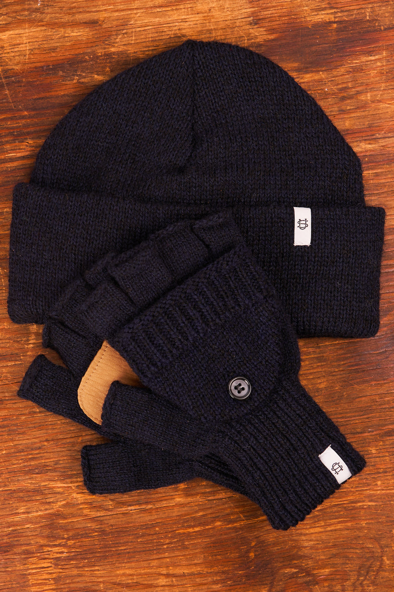 Bundle #11 - Navy Melange Ragg Wool Beanie With Deerskin Glomitt