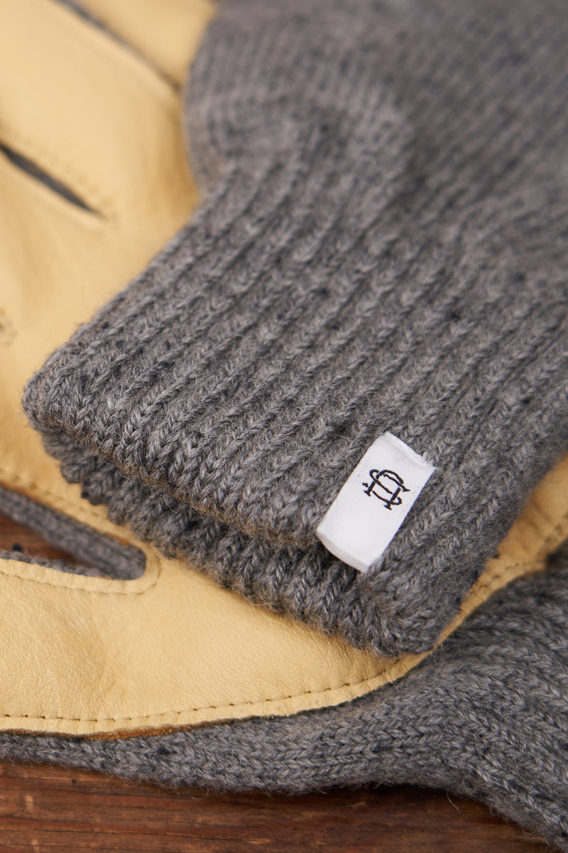 Undyed Merino Wool Fingerless Glove with Natural Deerskin Palm