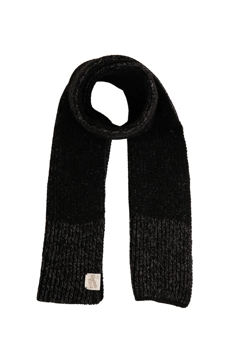Black Melange Ragg Wool Mitten with Black Deerskin